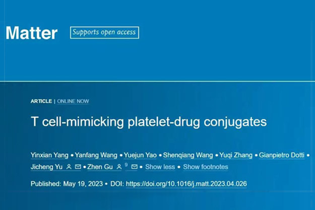 2023年5月19日,浙江大学药学院、金华研究院团队在国际学术期刊《Matter》上发表了题为“T Cell-Mimicking Platelet-Drug Conjugates”的研究论文。该研究通过将人工合成的颗粒酶B和穿孔素毒性蛋白复合物武装到血小板上,开发了一种具有能够模拟T细胞杀伤功能的血小板偶联药物(Platelet-Drug Conjugates,PDCs),以抑制肿瘤的转移扩散。