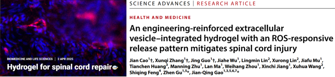 浙江大学药学院团队Science Advances发文:具备疾病微环境响应释药特性的工程化干细胞外囊泡一体凝胶修复脊髓损伤