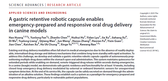浙江大学药学院团队Science Advances发文:胃驻留、智能响应的机器人胶囊破解应急口服给药难题